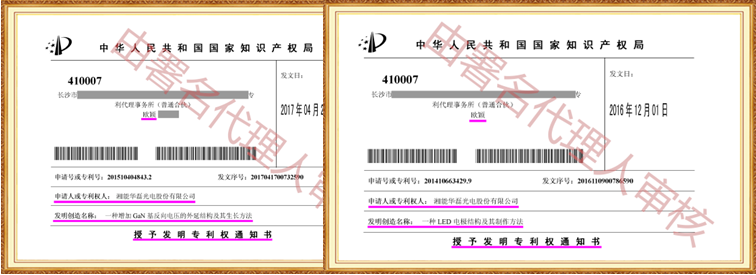 专利号:201510404843.2 专利名称:一种增加GaN基反向电压的外延结构及其生长方法 专利号:201410663429.9 专利名称:一种LED电极结构及其制作方法 |